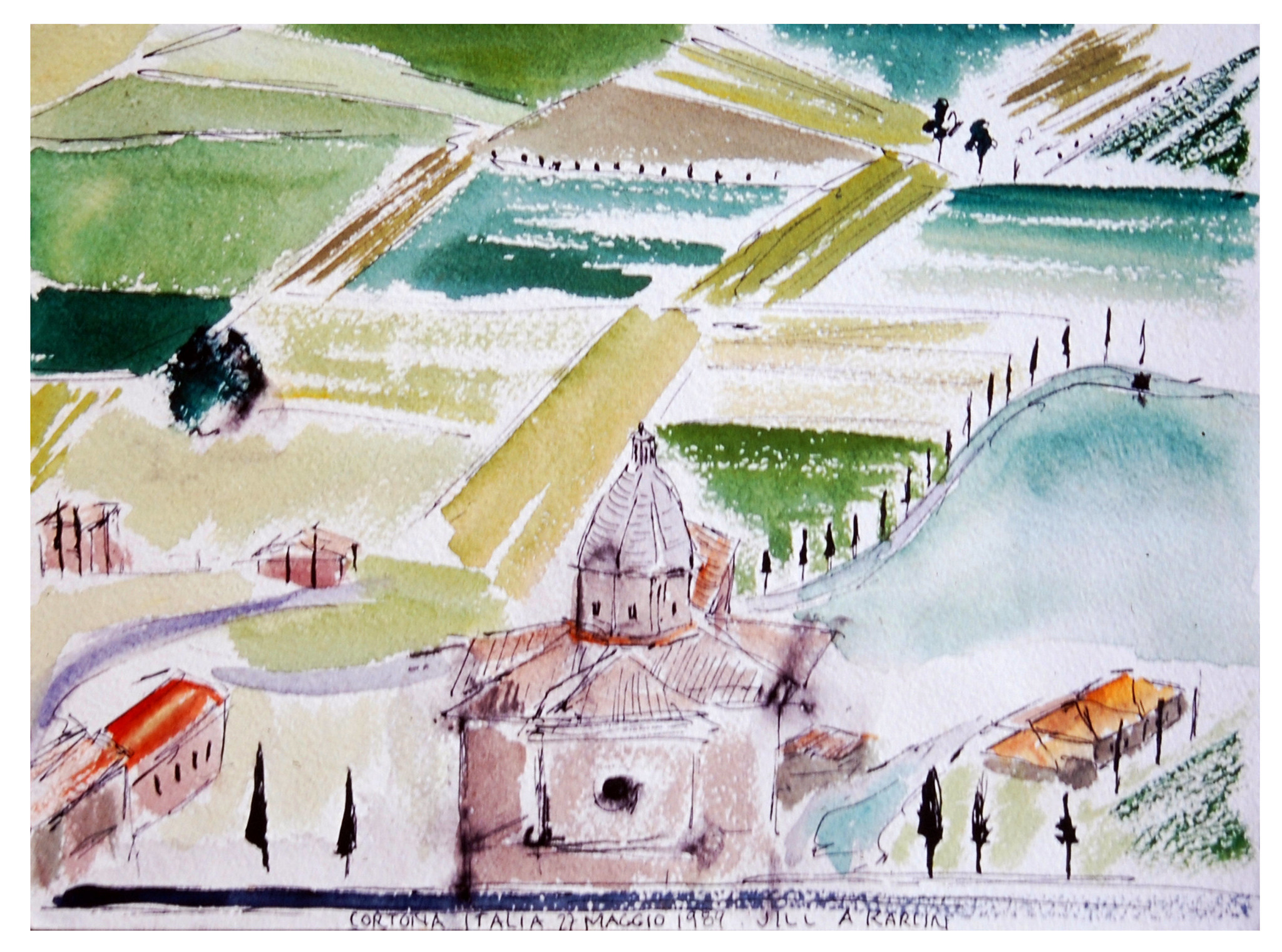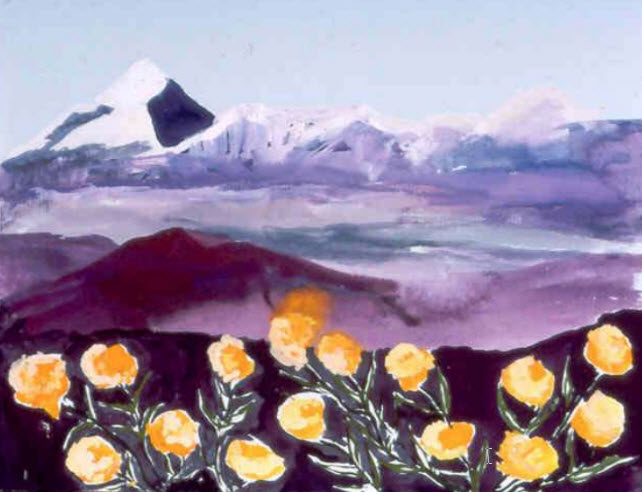 Jill’s first journey to Nepal and India in 1988 was so inspiring that she rose at 4 to capture the light, and painted daily. Biki Oberoi, to whom she was introduced in New Delhi, invited her to come back to India to exhibit her paintings, which she did in 1992 at the Oberoi, New Delhi. Her exhibition was favorably reviewed by all the major press.